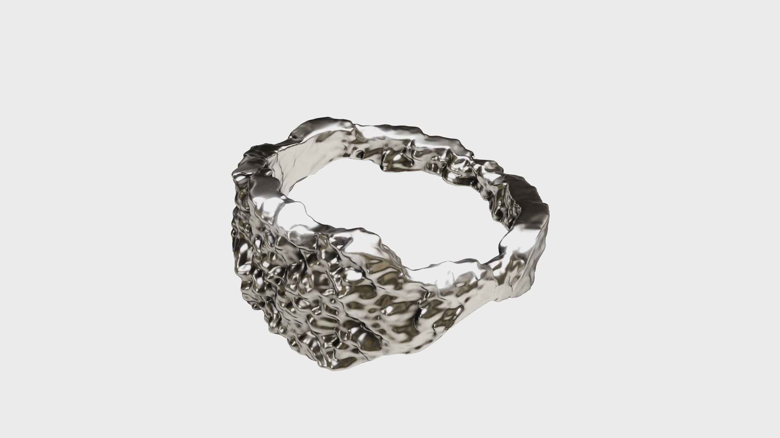 Solid 925 silver ring with a unique, distorted design. Every piece is one-of-a-kind and looks slightly different from the pictures and one another.